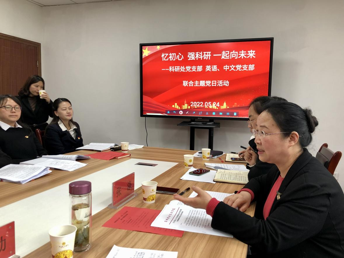 为推动科研处支部党建工作创新,坚持围绕中心、服务大局,把抓党建与促发展有机结合,充分发挥党外知识分子的智慧和力量,切实解决教师在教学科研工作中的难点问题,5月24日下午,科研处党支部联合马克思主义学院(公共基础部)英语、中文党支部开展了“忆初心、强科研,一起向未来”主题党日活动。活动特别邀请了省政协委员、我校九三学社委员、科研处处长、现代远程教育研究中心主任张涤教授对青年教师教学科研能力提升进行指导。