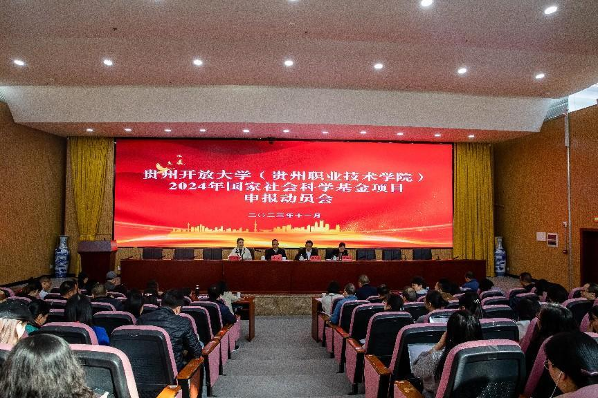 2023年11月21日,贵州开放大学(贵州职业技术学院)2024年国家社科基金申报动员会在学校行政楼九楼会议室召开,学校党委副书记、校长汤健,党委委员、纪委书记骆最勇,党委委员、副校长于立群,党委委员、党委组织部部长张仁俊出席会议;科研处及各部门主要负责人,各二级学院(部)书记、院长,学术带头人、中青年科研骨干、副高及以上级职称教师、博士和科研联络员参加会议。会议由党委委员、副校长于立群主持。