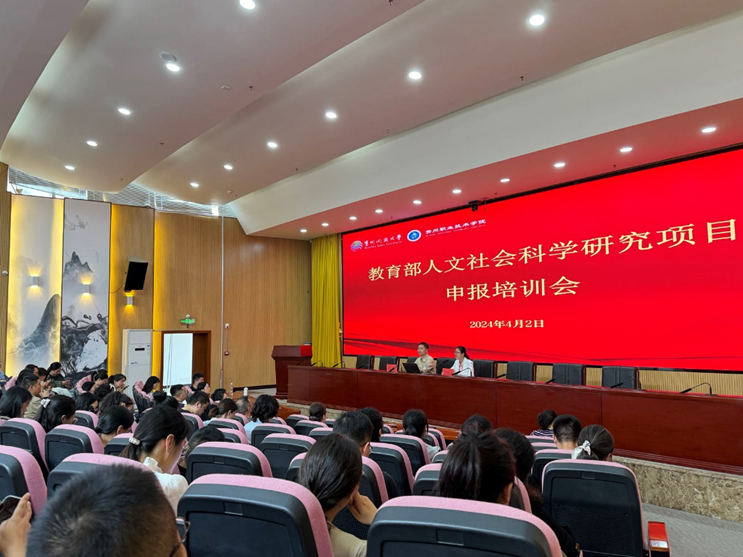 为进一步提升我校教师科研能力,不断强化有组织科研,有力推动科学研究高质量发展,提高学校科研项目申报数量和质量,学校科研处于2024年4月2日下午在行政楼九楼会议室开展教育部人文社会科学研究项目申报专题培训,副高级职称及以上教师、博士、各二级学院科研联络员、科研处全体人员以及部分青年教师参加了会议,会议由科研处处长陈舒主持。