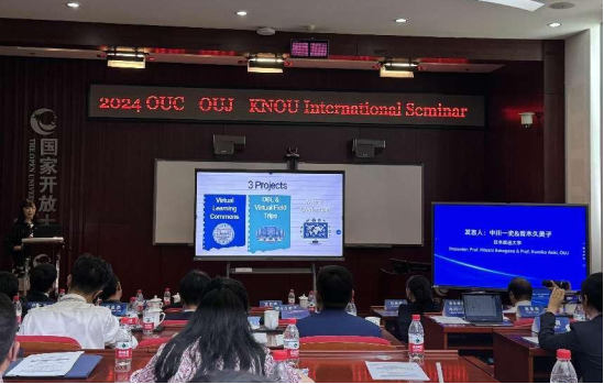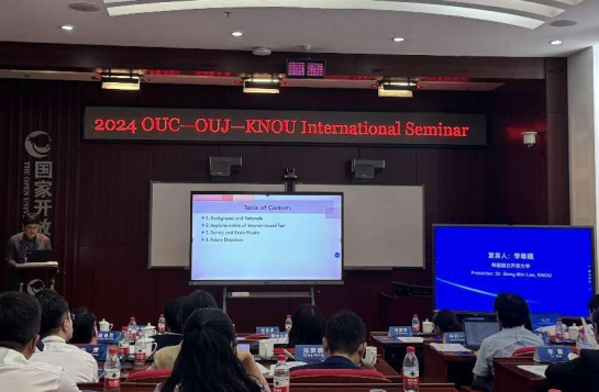 学术研讨环节,日本放送大学中川一史教授、青木久美子教授向大家介绍了日本放送大学下一代教育研究中心的规划和发展现状。她认为,当前远程教育存在资源分散、教学模式落后、学生积极性不高等问题,日本放送大学将2D元宇宙作为基础,建立教学平台,利用AI学习助手,将XR技术不断完善并推广,能较好解决上述问题;韩国国立开放大学李奉珉介绍了韩国国立开放大学在线考试的做法和经验,他认为开放教育考试时间固定、考试题目类型较少、考试形式过于单一,导致学生不能合理分配学生和生活时间,韩国国立大学打破传统的考试系统模式,将考试时间、考试题型随机化,既避免学生考试作弊,又调动学生的积极性和创造性,通过该系统的使用,学生在教学参与度、满意度、认可度都有明显提升。
