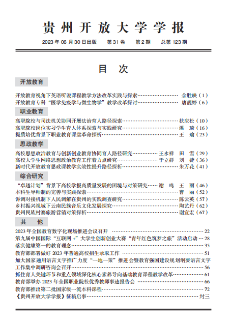 《贵州开放大学学报》2023年第2期目录及电子文档