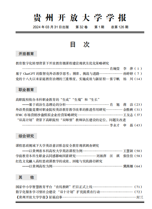 《贵州开放大学学报》2024年第1期电子版